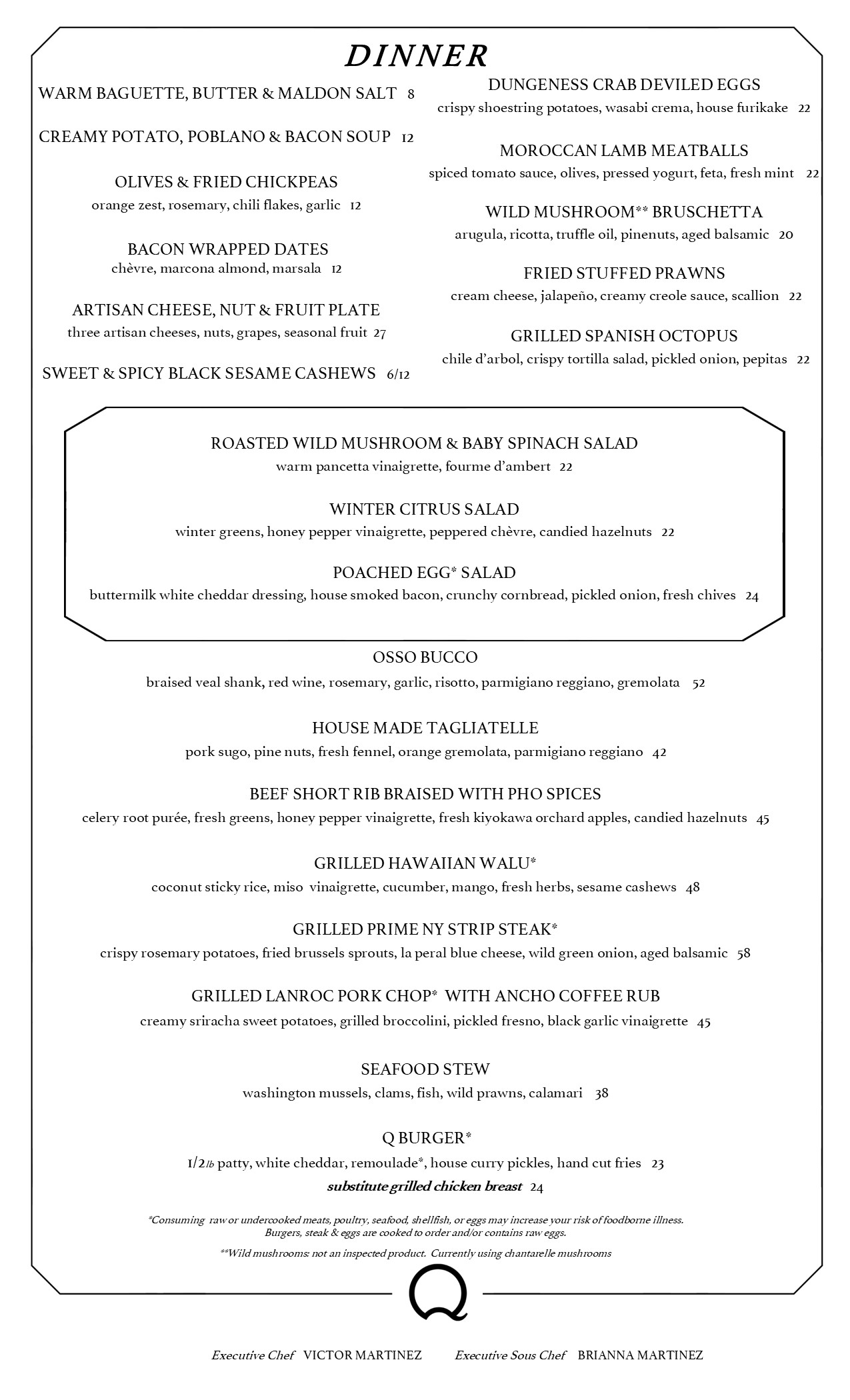 Q Restaurant & Bar is a family-owned restaurant in downtown Portland, Oregon, established in 2016. Motivated by the love of great food, fine wines, and the enriching experience of dining out…
